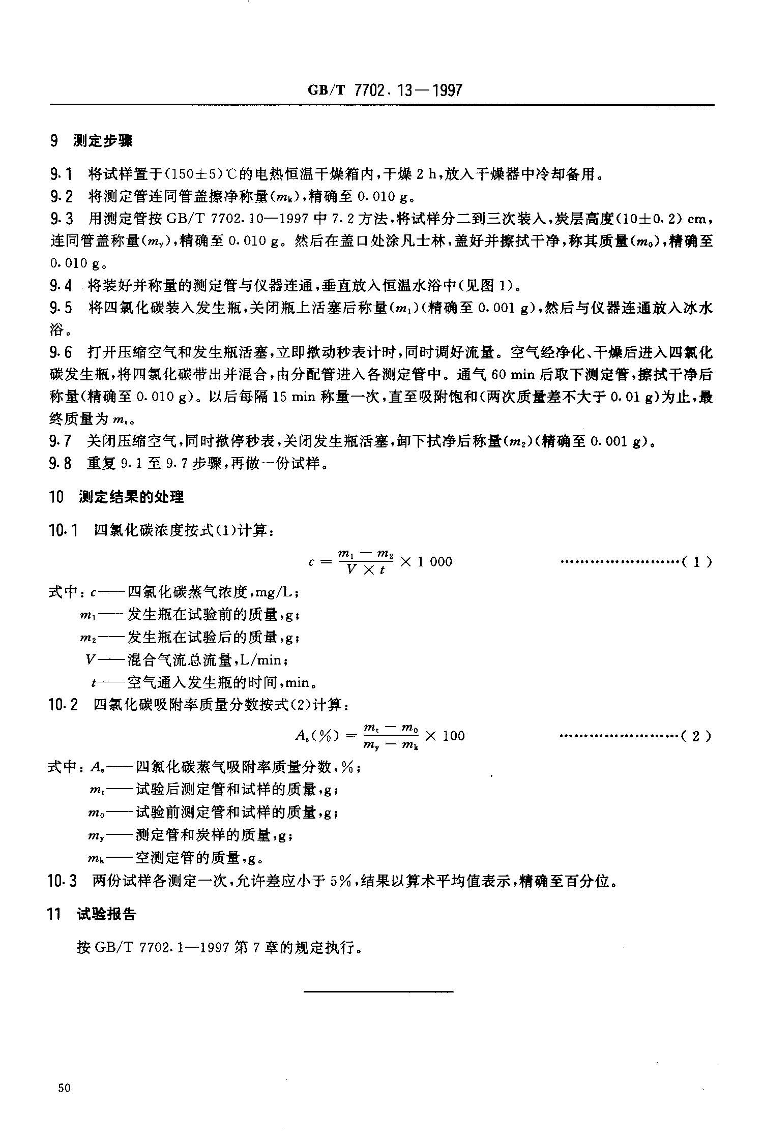 【GBT 7702.13-1997 煤質顆粒活性炭試驗方法 四氯化碳吸附率的測定】